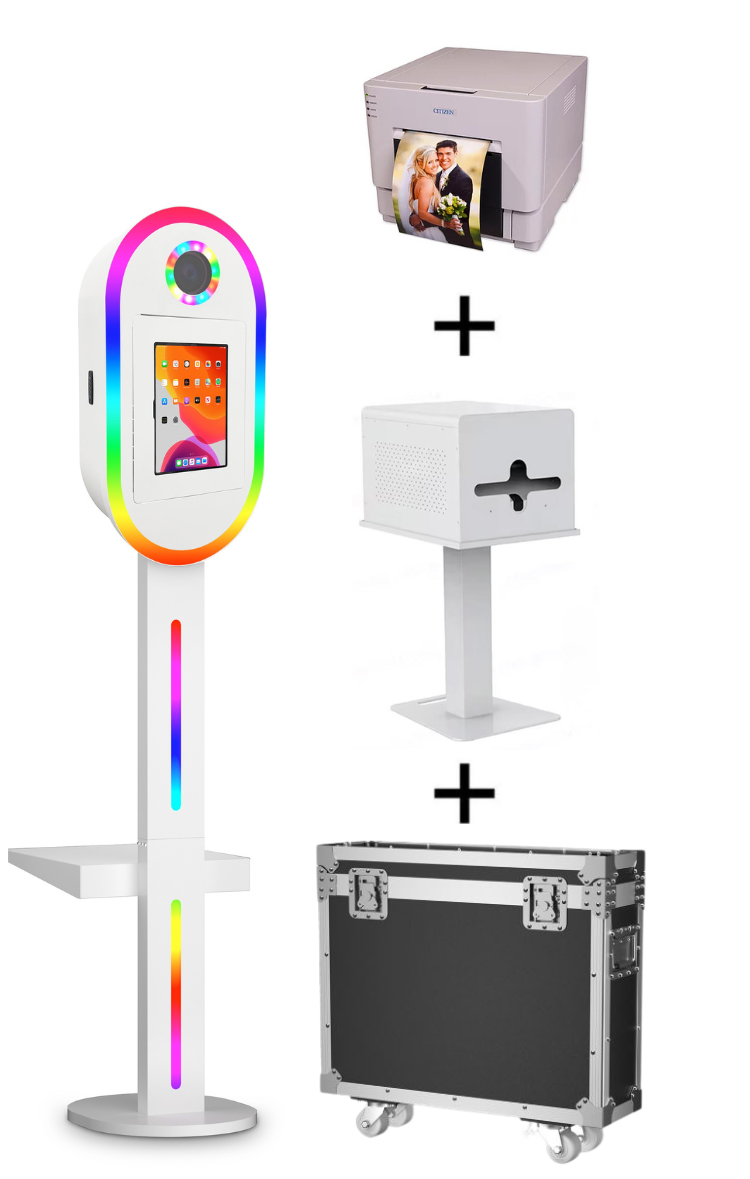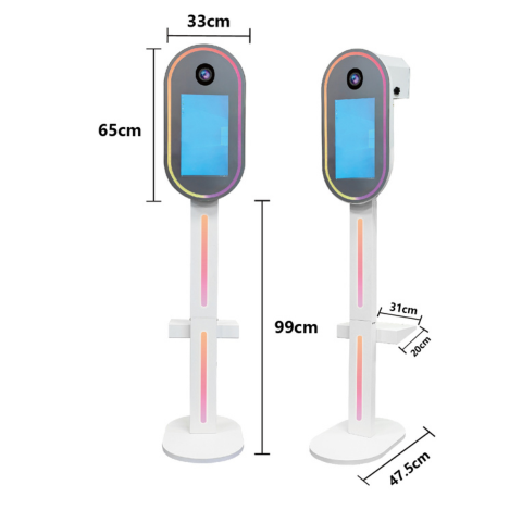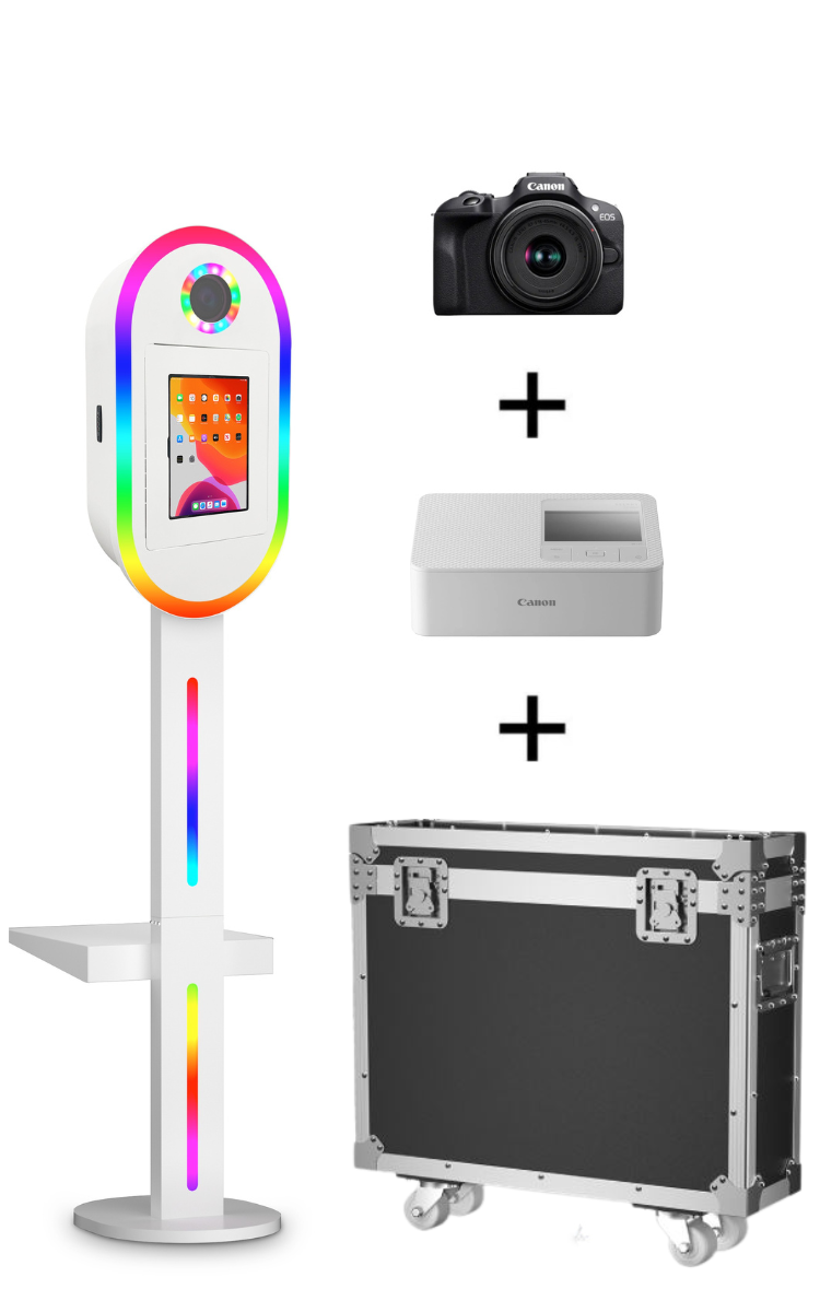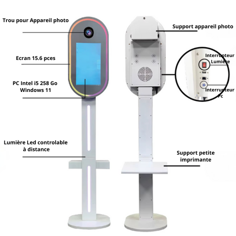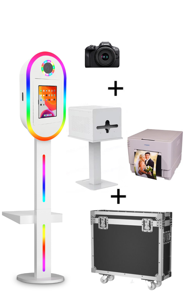 Son design élégant et moderne permet à notre photobooth Aura de s’intègrer parfaitement à tous les environnements — mariages, fêtes privées, anniversaires ou événements professionnels.